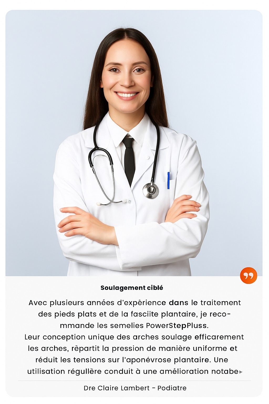 Oui, les PowerStepPlus peuvent soulager divers problèmes de pieds, notamment la fasciite plantaire, la douleur à la voûte plantaire, la douleur au talon et la métatarsalgie.